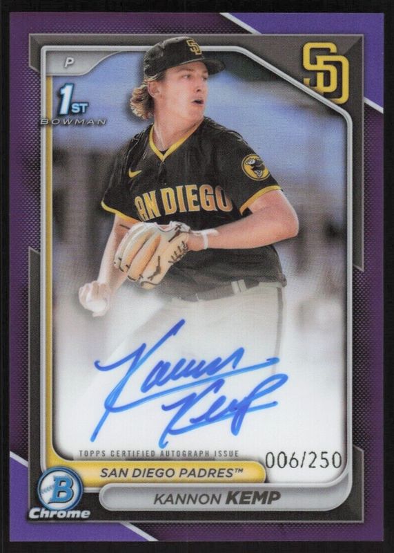 2024 Bowman Chrome Kannon Kemp 1st Purple Refractor Auto #D /250 Padres #CPA-KK