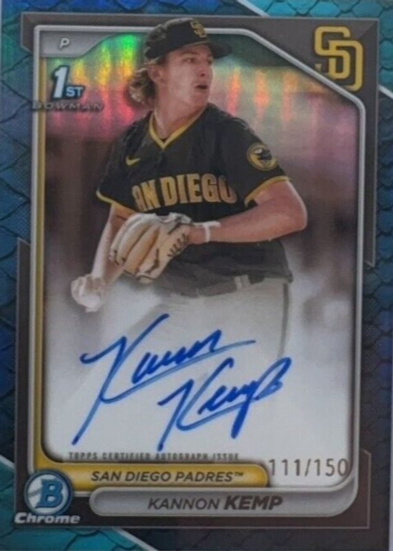 2024 Bowman Chrome Kannon Kemp Auto Reptilian Blue Refractor 1st Prospect #/150