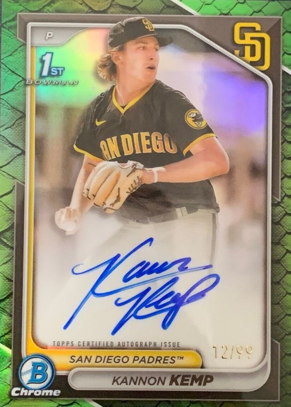 2024 1st Bowman Chrome Kannon Kemp Green Reptilian Auto /99 Padres