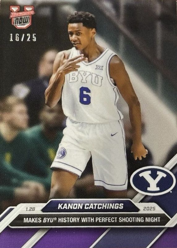 The Kanon Catchings 2024 Bowman U Now #53 Purple /25 card in Raw condition has not changed in price in the last 30 days and was last sold for $11.75 .