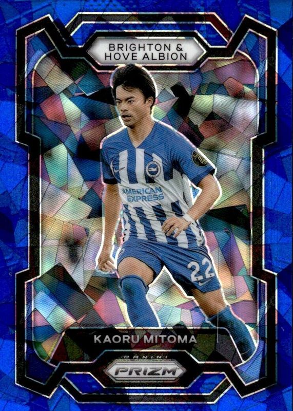 2023-24 Panini Prizm Premier League Kaoru Mitoma Blue Cracked Ice Prizm /75