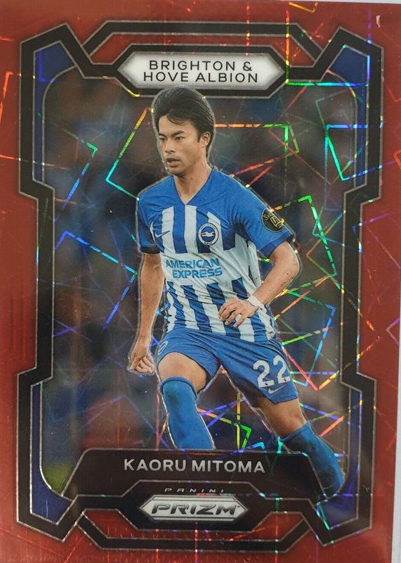 2023-24 Panini Prizm Premier League Red Lazer Prizm /49 Kaoru Mitoma #99