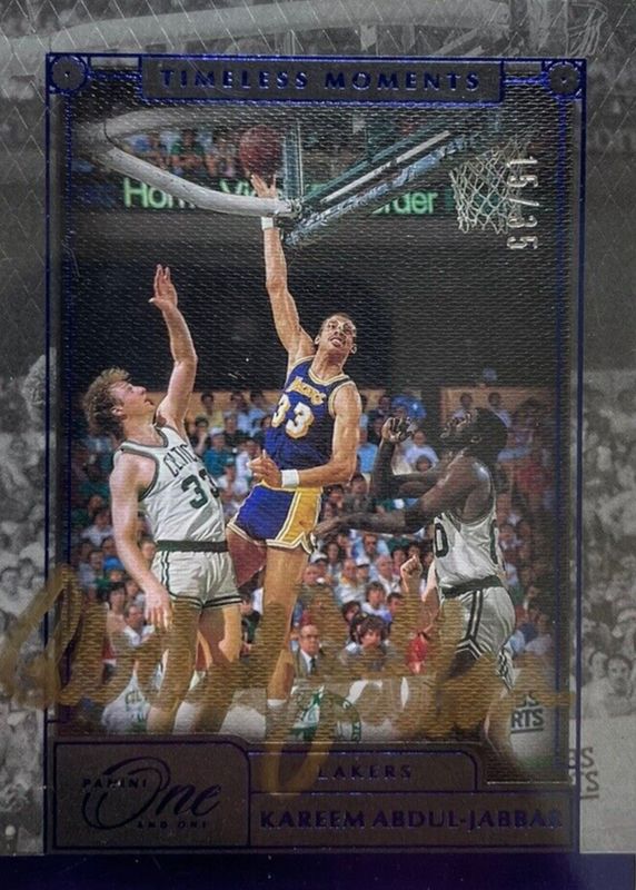 The Kareem Abdul-Jabbar 2020 One and One #TML-KAJ Timeless Moments Autographs - Blue (/35) card in Raw condition has not changed in price in the last 30 days and was last sold for $365.00 .