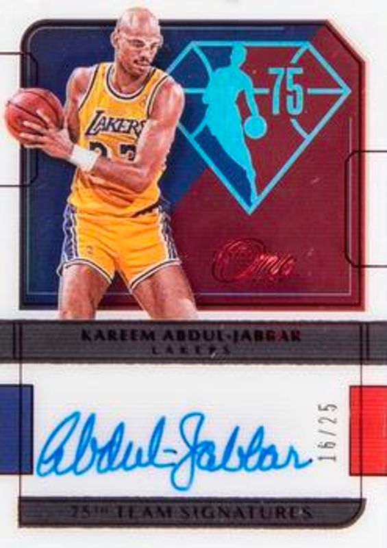 Kareem Abdul-Jabbar 2021 One and One #75-KAJ 75th Team Signatures - Red /15 RAW Price Guide