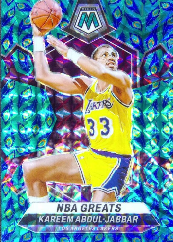 Kareem Abdul-Jabbar 2023 Mosaic #299 NBA Greats - Choice Peacock /(SSP) RAW Price Guide
