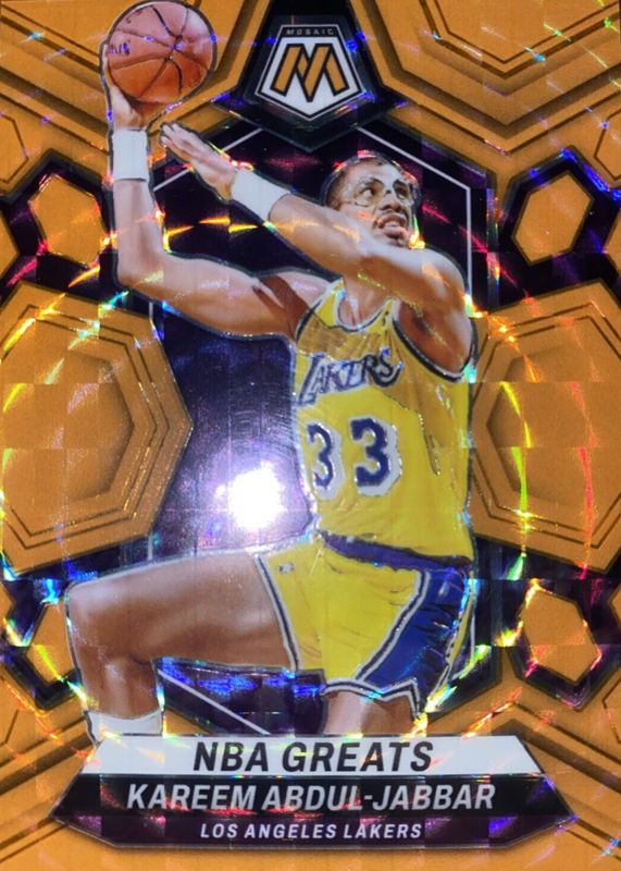 Kareem Abdul-Jabbar 2023 Mosaic #299 NBA Greats - Orange Fluorescent /25 RAW Price Guide