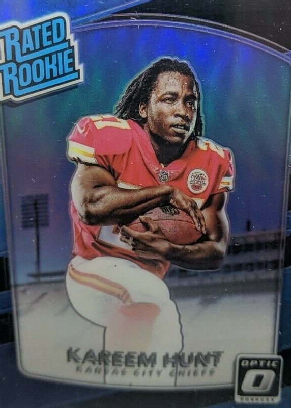 Kareem Hunt's Football cards are available in at least 16 sets. Kareem Hunt's biggest 7-day price movers are 2017 Prizm #253 Silver, 2017 Donruss #332 Base, and 2017 Optic #182 Black /25.