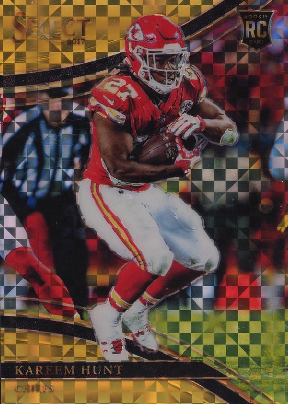 Kareem Hunt's Football cards are available in at least 61 sets. Kareem Hunt's biggest 7-day price movers are 2017 Select #238 Field Level Gold /10, 2017 Prizm #RA-KH Rookie Autographs, and 2018 Absolute #JNS-KH Jumbo NFL Shields /7.