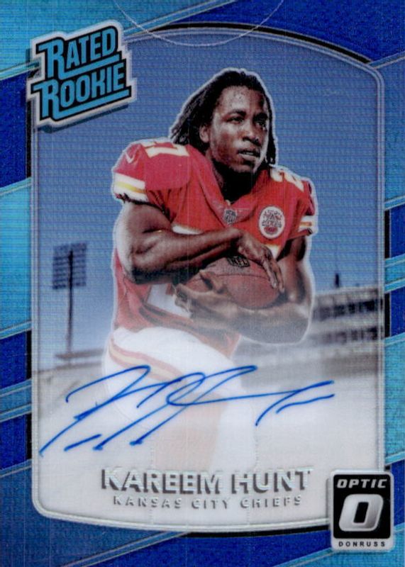 2017 Donruss Optic Kareem Hunt Rated Rookie Auto Blue /75