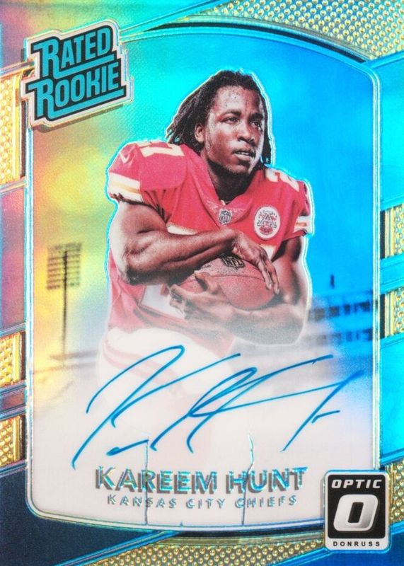 Kareem Hunt 2017 Optic #182 Rated Rookie Autographs - Gold /10 RAW Price Guide