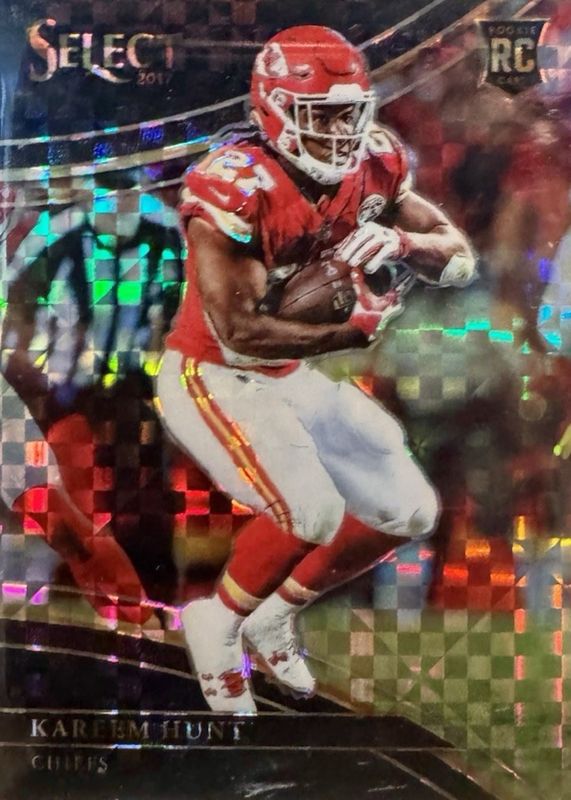 This card is 1 of 31 Kareem Hunt's card variations in the 2017 Select set being tracked by Sports Card Investor, including Concourse, Concourse Silver, Field Level, Field Level Silver, and Premier Level.
