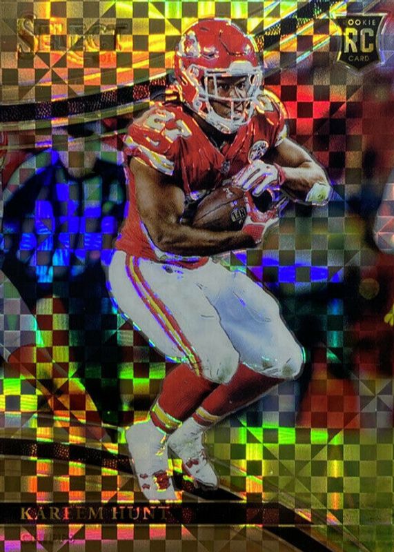 This card is 1 of 31 Kareem Hunt's card variations in the 2017 Select set being tracked by Sports Card Investor, including Concourse, Concourse Silver, Field Level, Field Level Silver, and Premier Level.
