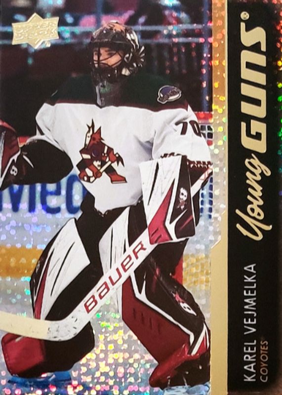 This card is 1 of 9 Karel Vejmelka's card variations in the 2021 Upper Deck set being tracked by Sports Card Investor, including Young Guns Base, Young Guns - Clear Cut, Young Guns - Clear Cut Exclusives, Young Guns - French, and Young Guns - Jumbo.