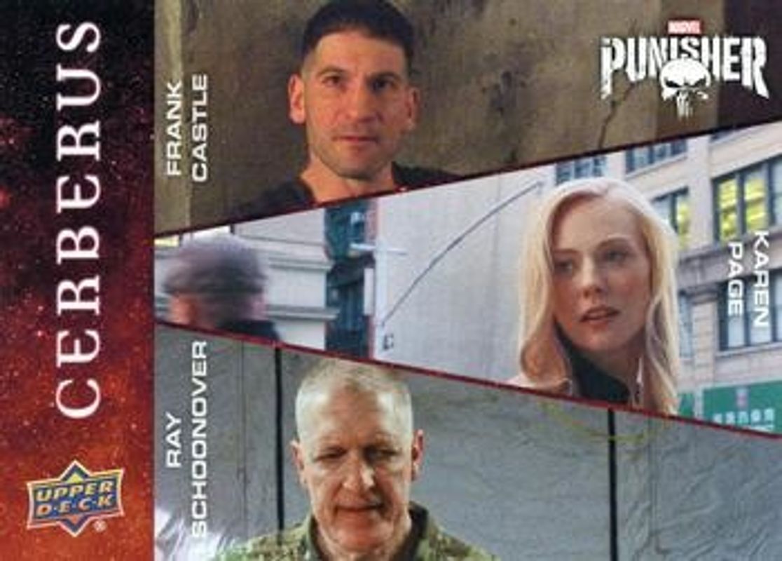 The Karen Page 2020 Upper Deck Punisher Season 1 #C-8 Cerberus card is 1 of 4 Karen Page's card variations in the 2020 Upper Deck Punisher Season 1 set being tracked by Sports Card Investor, including Memento Mori, Patch Work Puzzles Manufactured Patch, and Patch Work Singles Manufactured Patch.