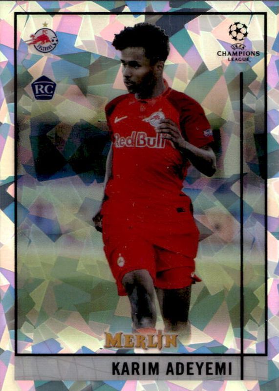 The Karim Adeyemi 2020 Topps Merlin Chrome UEFA Champions League #35 Atomic Refractor /250 Rookie card in Raw condition has not changed in price in the last 30 days and was last sold for $4.35 .
