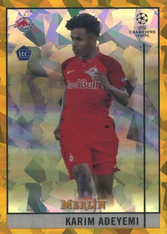 Best Prices Available For Sale of Karim Adeyemi 2020 Topps Merlin Chrome UEFA Champions League #35 Gold Atomic Refractor /50