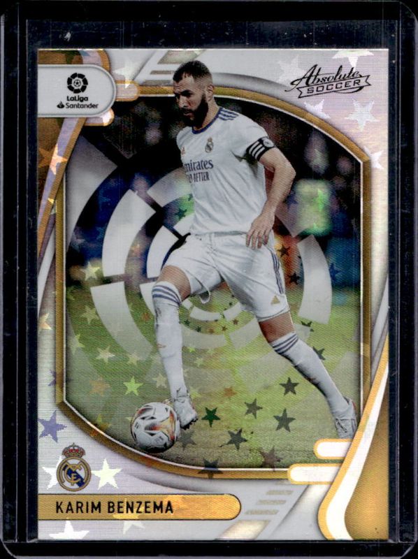 The Karim Benzema 2021 Chronicles #56 Absolute La Liga Purple - Astro card is 1 of 35 Karim Benzema's card variations in the 2021 Chronicles set being tracked by Sports Card Investor, including Absolute La Liga, Absolute La Liga - Gold Laser, Absolute La Liga - Red Laser, Absolute La Liga - Silver, and Certified La Liga.