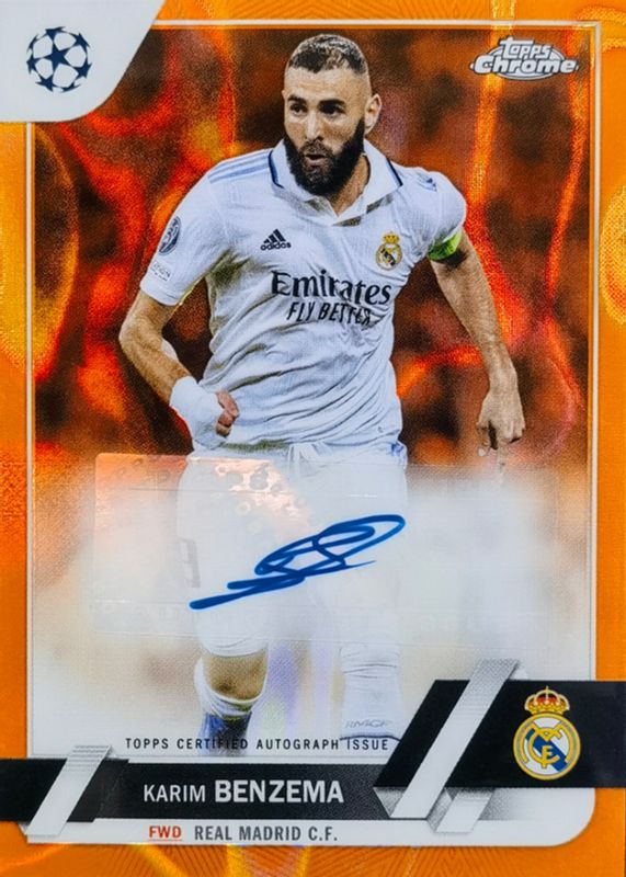 2022-23 Topps Chrome UEFA UCC KARIM BENZEMA Auto Orange Lava Real Madrid SSP