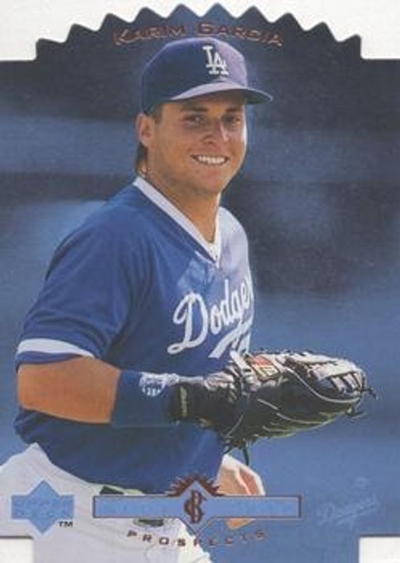 The Karim Garcia 1996 Upper Deck #BC8 Blue Chip Prospects Rookie card is 1 of 2 Karim Garcia's card variations in the 1996 Upper Deck set being tracked by Sports Card Investor, including Base.