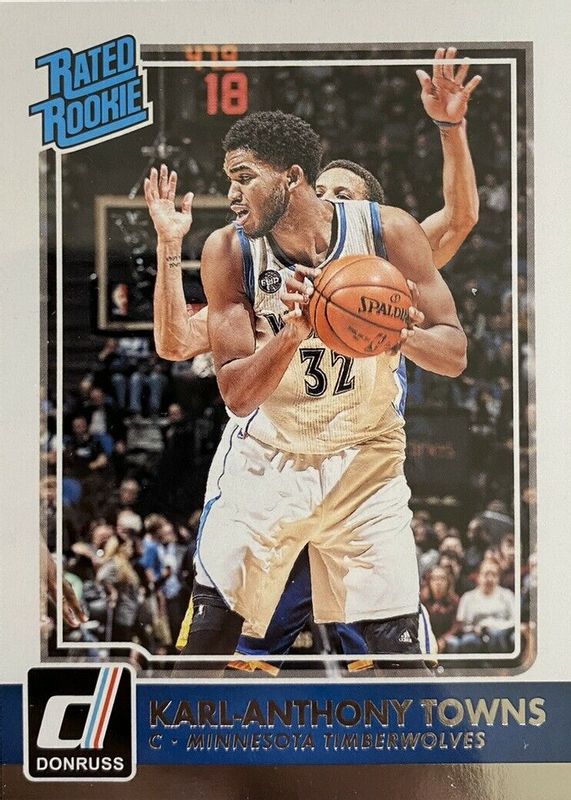The Karl-Anthony Towns 2015 Donruss Base Rookie card in Raw condition has moved up $0.59 (+13.4%) in the last 30 days and was last sold for $4.99 .