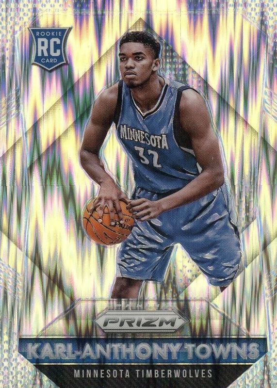 The Karl-Anthony Towns 2015 Prizm #328 Flash Rookie card in Raw condition has moved down -$33.49 (-74.4%) in the last 30 days and was last sold for $11.50 .