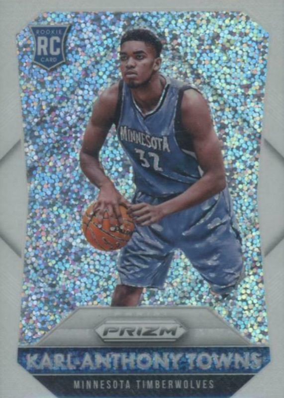 This card is 1 of 25 Karl-Anthony Towns' card variations in the 2015 Prizm set being tracked by Sports Card Investor, including Base, Flash, Green, Orange Wave, and Red White Blue.
