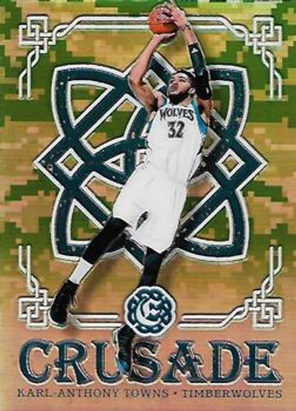 The Karl-Anthony Towns 2016 Excalibur #15 Crusade - Camo card is 1 of 47 Karl-Anthony Towns' card variations in the 2016 Excalibur set being tracked by Sports Card Investor, including Base, Baron, Count, Lord, and Viscount.