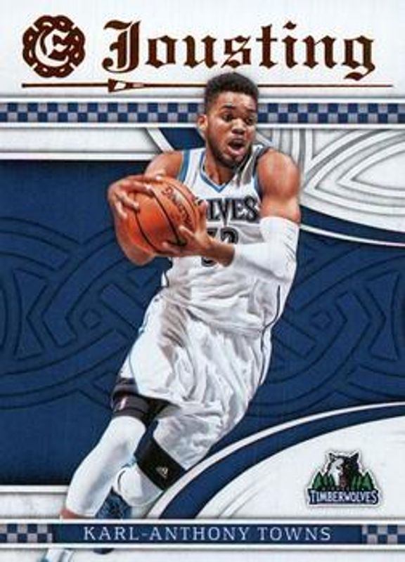 The Karl-Anthony Towns 2016 Excalibur #17 Jousting card is 1 of 47 Karl-Anthony Towns' card variations in the 2016 Excalibur set being tracked by Sports Card Investor, including Base, Baron, Count, Lord, and Viscount.