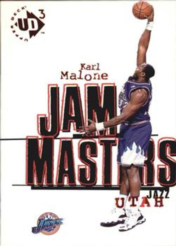 The Karl Malone 1997 Upper Deck UD3 #13 Base card is 1 of 3 Karl Malone's card variations in the 1997 Upper Deck UD3 set being tracked by Sports Card Investor, including Base, and Awesome Action.