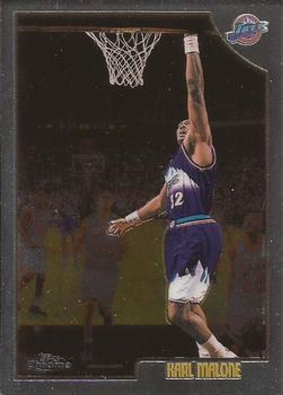 The Karl Malone 1998 Topps Chrome #145 Base card is 1 of 6 Karl Malone's card variations in the 1998 Topps Chrome set being tracked by Sports Card Investor, including Refractor, Apparitions, Season's Best, Season's Best - Refractor, and Apparitions - Refractor /100.