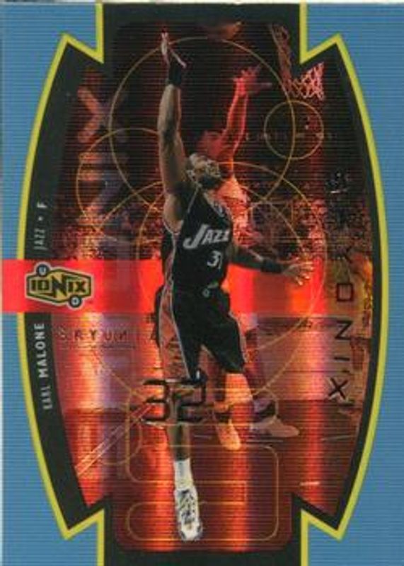 The Karl Malone 1998 Upper Deck Ionix #S24 Skyonix card is 1 of 3 Karl Malone's card variations in the 1998 Upper Deck Ionix set being tracked by Sports Card Investor, including Base, and Reciprocal /100.