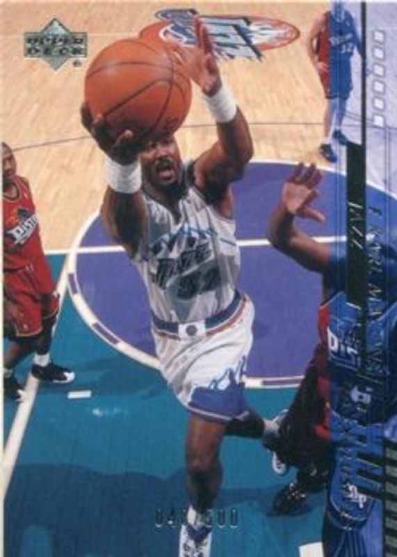 The Karl Malone 2000 Upper Deck #168 UD Exclusives Silver /100 card is 1 of 8 Karl Malone's card variations in the 2000 Upper Deck set being tracked by Sports Card Investor, including Base, UD Exclusives Silver /100, All Star Class, e Cards (Series One), and e Card e|volve Game Used Jerseys (Series One) /300.