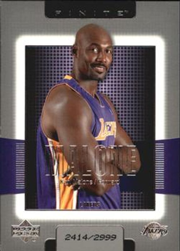 The Karl Malone 2003 Upper Deck Finite #83 Base /500 card is 1 of 10 Karl Malone's card variations in the 2003 Upper Deck Finite set being tracked by Sports Card Investor, including #283 Base /500, #325 Base /500, #83 Gold /25, #283 Gold /25, and #325 Gold /25.