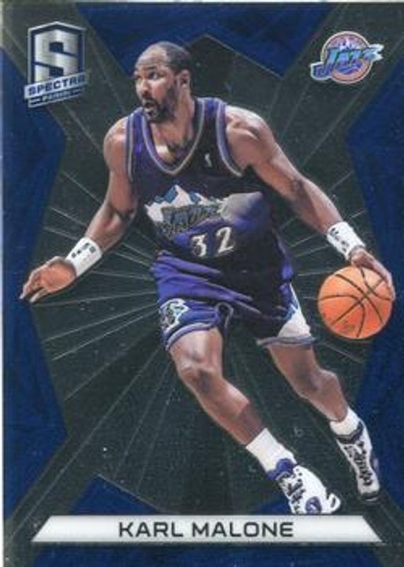 The Karl Malone 2015 Spectra #16 Base /125 card is 1 of 20 Karl Malone's card variations in the 2015 Spectra set being tracked by Sports Card Investor, including Spectacular Swatch Signatures /149, City Limits /(SSP), Materials /49, Spectacular Swatch Signatures - Light Blue /49, and Marks Memorabilia /35.