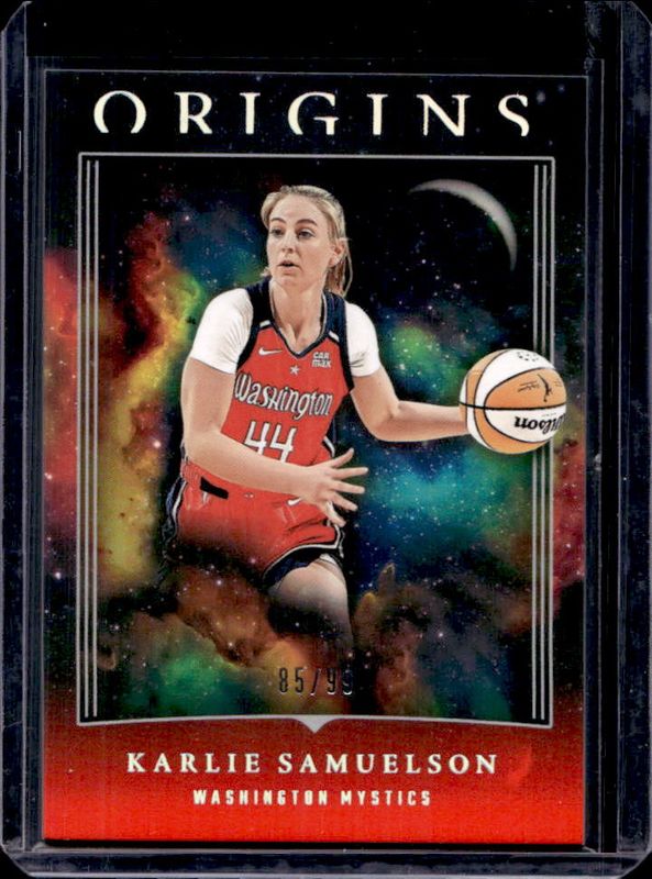 The Karlie Samuelson 2024 Origins WNBA #65 Red /99 card is 1 of 13 Karlie Samuelson's card variations in the 2024 Origins WNBA set being tracked by Sports Card Investor, including Base, Blue /75, Swirl /(SSP), Teal /49, and Purple /25.