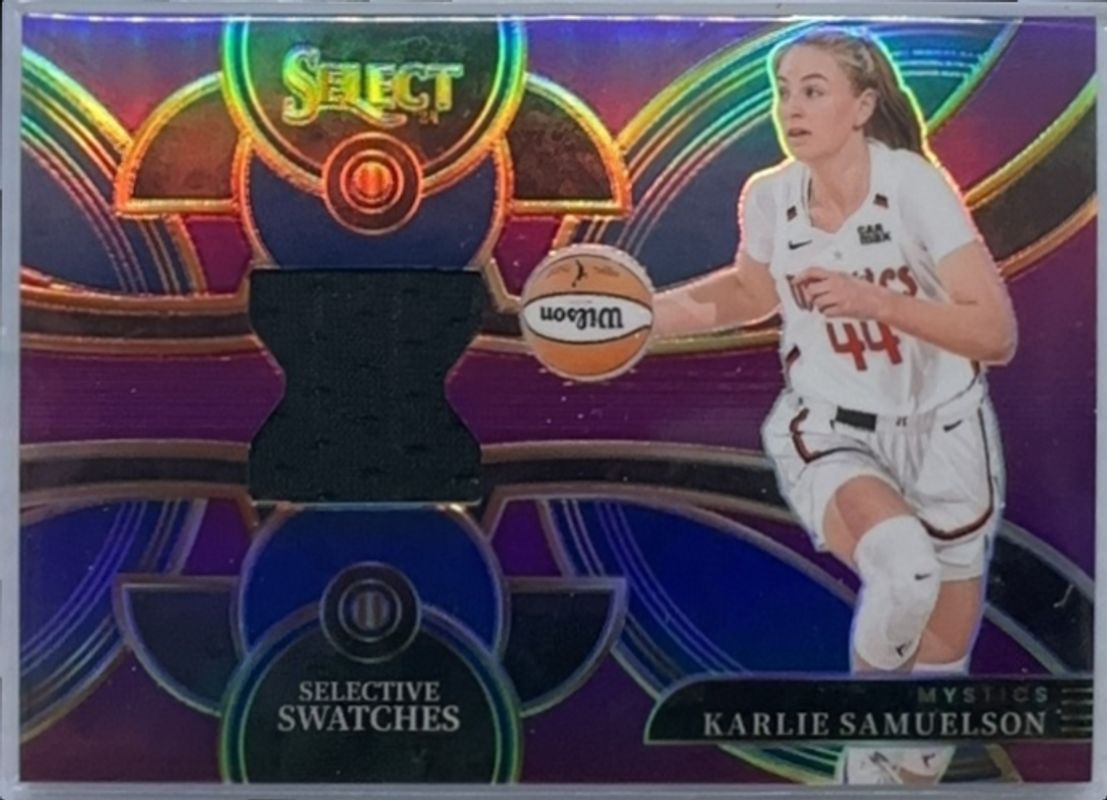 The Karlie Samuelson 2024 Select WNBA #SW-KS Selective Swatches Purple /49 card is 1 of 54 Karlie Samuelson's card variations in the 2024 Select WNBA set being tracked by Sports Card Investor, including #132 Base, #99 Base, #132 Base Green Ice, #99 Base Green Ice, and #99 Base Pink Ice.