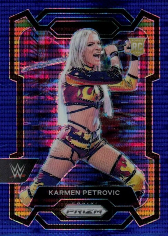 Karmen Petrovic 2024 Prizm WWE #107 Blue Pulsar /75 Rookie RAW Price Guide