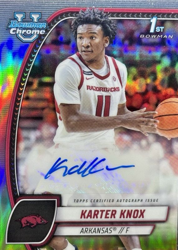 KARTER KNOX 2024-25 BOWMAN U CHROME 1ST REFRACTOR ARKANSAS AUTO Q1389