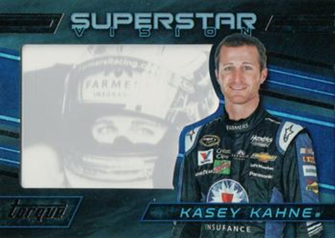 The Kasey Kahne 2016 Torque NASCAR #SV5 Superstar Vision card is 1 of 118 Kasey Kahne's card variations in the 2016 Torque NASCAR set being tracked by Sports Card Investor, including #60 Base, #75 Base, #20 Base, #60 Gold, and #75 Gold.