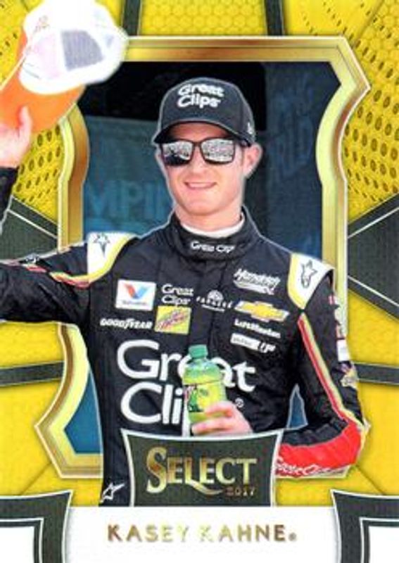 The Kasey Kahne 2017 Select NASCAR #25 Gold /10 card is 1 of 109 Kasey Kahne's card variations in the 2017 Select NASCAR set being tracked by Sports Card Investor, including #29 Base, #110 Base, #24 Base, #25 Base, and #26 Base.