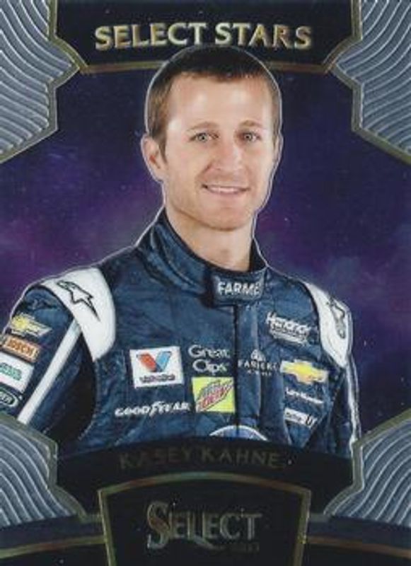 The Kasey Kahne 2017 Select NASCAR #S6 Select Stars card is 1 of 109 Kasey Kahne's card variations in the 2017 Select NASCAR set being tracked by Sports Card Investor, including #29 Base, #110 Base, #24 Base, #25 Base, and #26 Base.
