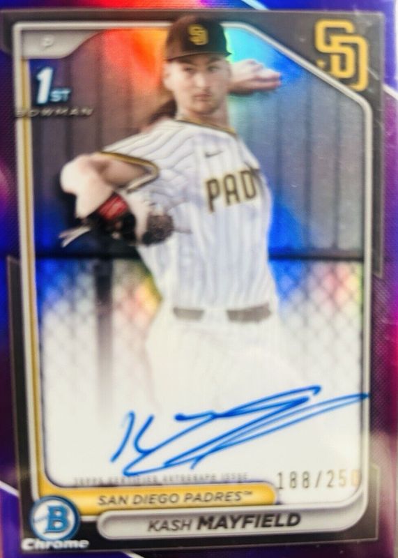 2024 Bowman Chrome Prospect Autographs KASH MAYFIELD 1st Purple Refractor /250