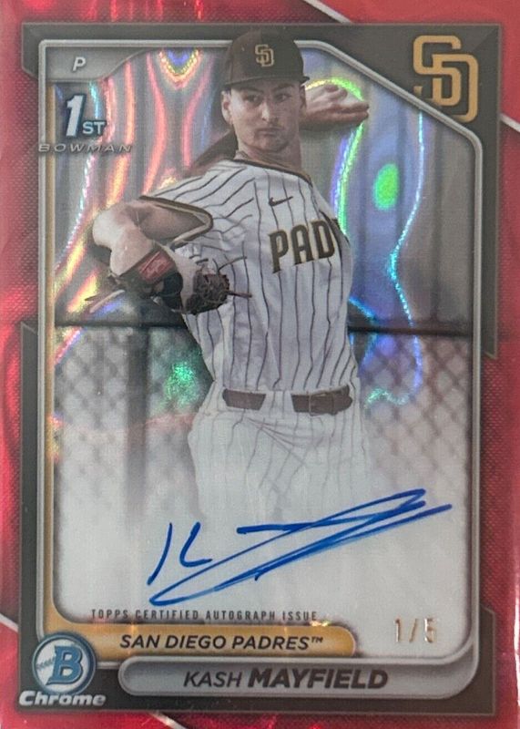 Kash Mayfield 2024 Bowman Draft #CPA-KM Chrome DP Auto - Red Lava Refractor /5 (1st) RAW Price Guide