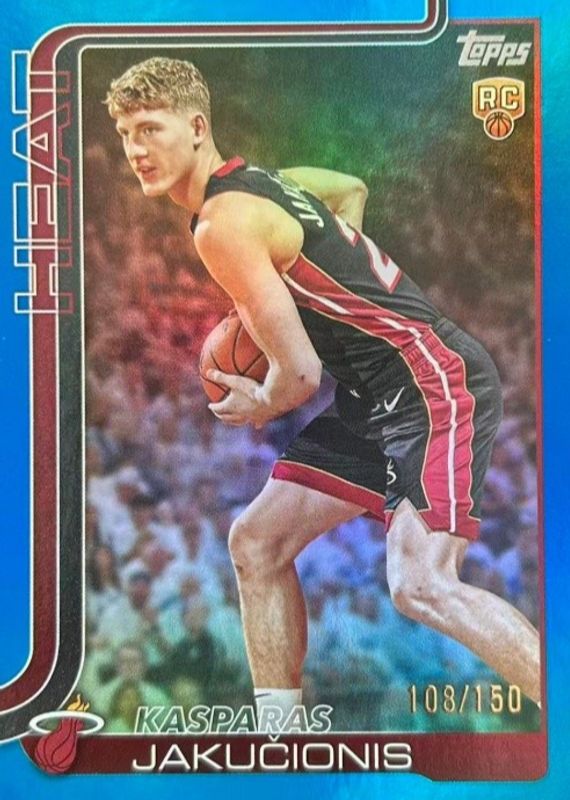 The Kasparas Jakucionis 2025 Topps #220 Blue Holo Foil /150 Rookie card in Raw condition has moved down -$0.20 (-5.3%) in the last 30 days and was last sold for $3.55 .
