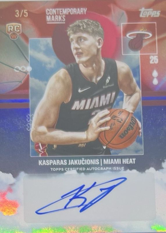 Auctions Ending Soon for Kasparas Jakucionis 2025 Topps #CM-KJ Contemporary Marks - Red Rainbow /5 Rookie RAW