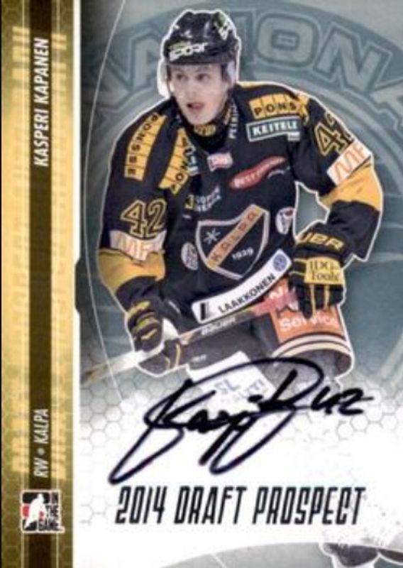 Kasperi Kapanen's Hockey cards are available in at least 51 sets. Kasperi Kapanen's biggest 7-day price movers are 2016 Upper Deck #452 Young Guns Base, 2014 In The Game Draft Prospects #A-KK1 Autographs, and 2014 In The Game Draft Prospects #62 Printing Plates Magenta /1.