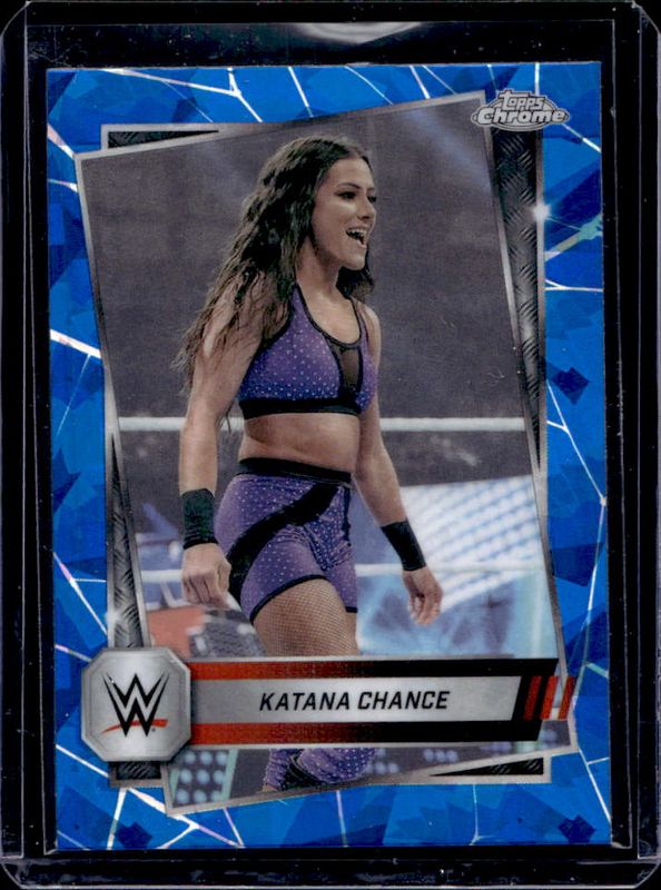 The Katana Chance 2025 Topps Chrome WWE Sapphire Edition #199 Base Chrome card is 1 of 11 Katana Chance's card variations in the 2025 Topps Chrome WWE Sapphire Edition set being tracked by Sports Card Investor, including Red Brand Autographs, Base Chrome - Green Refractor /75, Base Chrome - Gold Refractor /50, Base Chrome - Orange Refractor /25, and Red Brand Autographs - Orange Refractor /25.