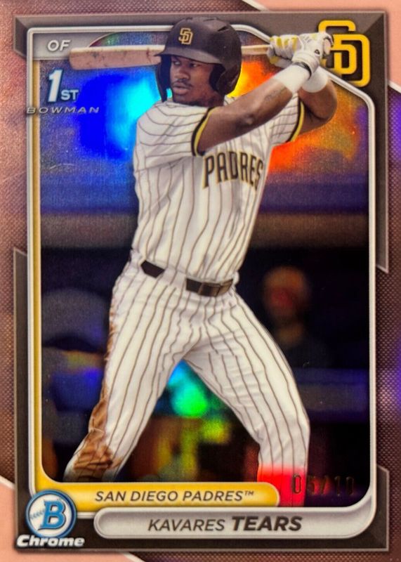 This card is 1 of 50 Kavares Tears' card variations in the 2024 Bowman Draft set being tracked by Sports Card Investor, including Chrome (1st), Chrome - Bubble Gum (1st), Chrome - Lunar Glow Refractor (1st), Chrome - Peanuts (1st), and Chrome - Pearl Refractor (1st).