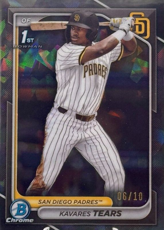 This card is 1 of 7 Kavares Tears' card variations in the 2024 Bowman Draft Sapphire Edition set being tracked by Sports Card Investor, including Chrome (1st), Chrome - Yellow /75 (1st), Chrome - Gold /50 (1st), Chrome - Orange /25 (1st), and Chrome - Red /5 (1st).