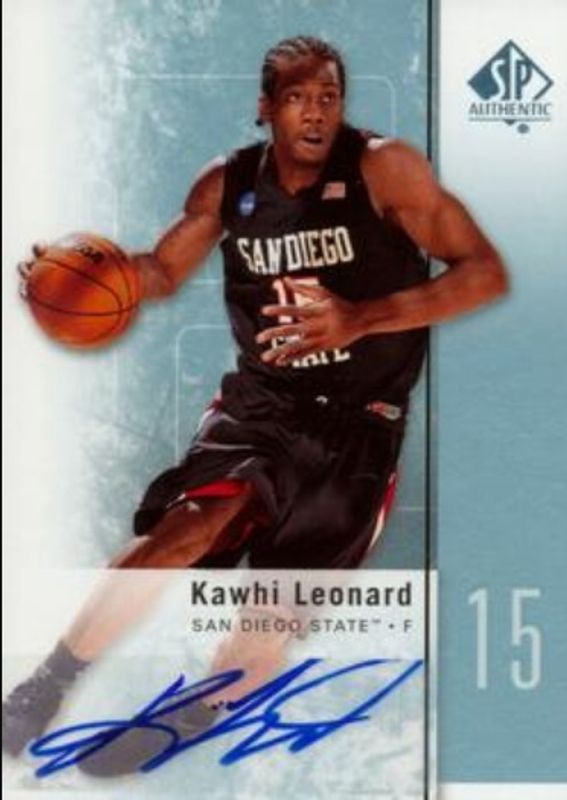 The Kawhi Leonard 2011 SP Authentic #27 Autographs /3 Rookie card is 1 of 6 Kawhi Leonard's card variations in the 2011 SP Authentic set being tracked by Sports Card Investor, including #27 Base, #88 Base, #88 Rookie FX, #88 Autographs /3, and #27 Autographs Gold /3.